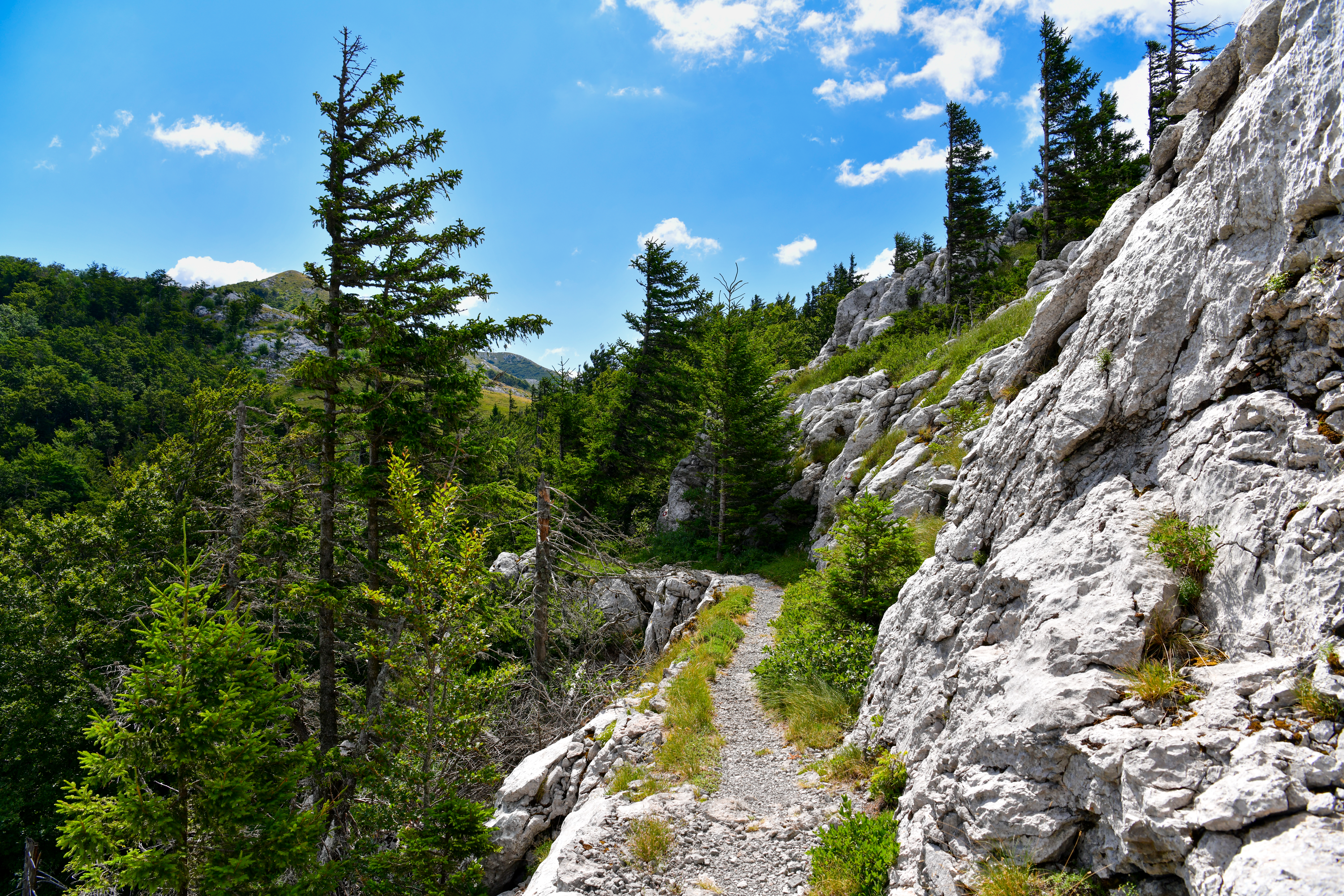 To ease passage through the rugged parts of Velebit, the trail features switchbacks, retaining walls, and bridges; parts of it are carved into rock and paved with local stone. Thanks to the quality of its construction and its harmonious integration into the landscape, the Premužić Trail is considered a masterpiece of trail-building and, since 2009, is listed as protected cultural heritage of the Republic of Croatia.